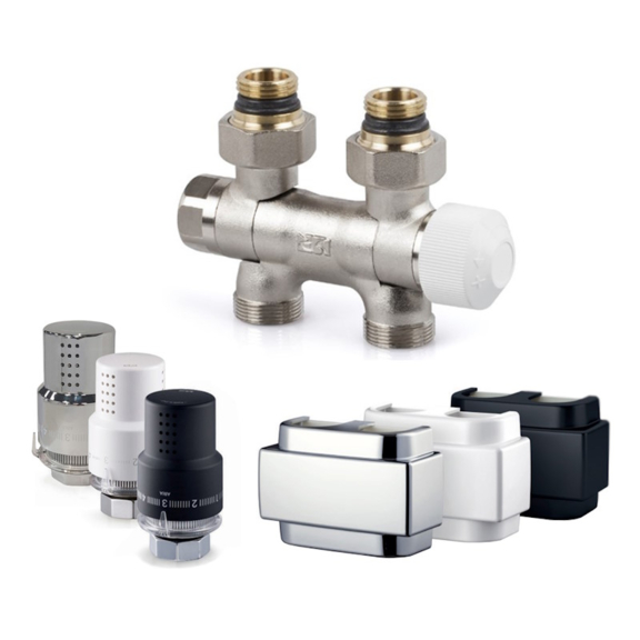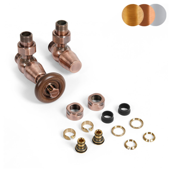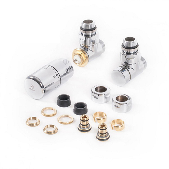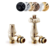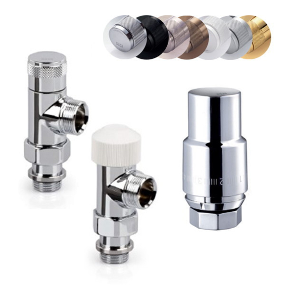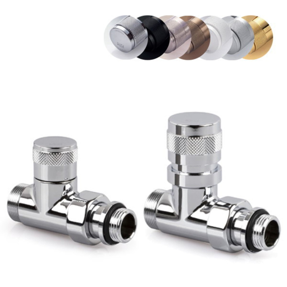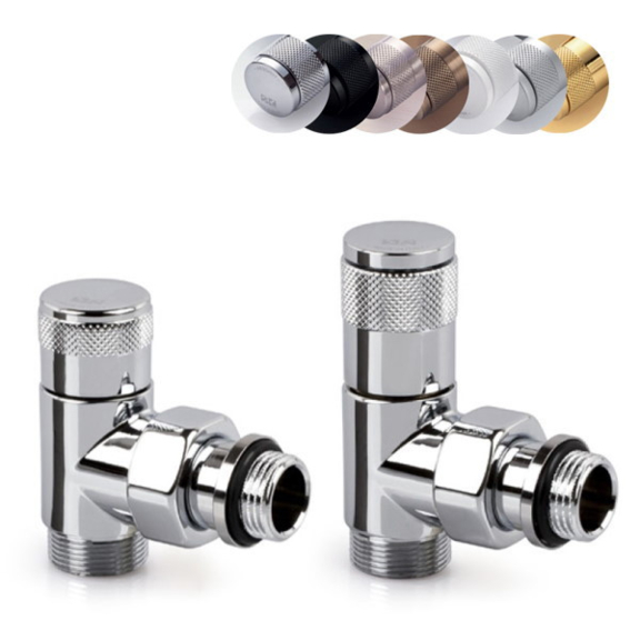 Thermostatisches Design-Eckventilset – Paar 0373+0398 (ein Zuleitungsventil, ein Ableitungsventil und 2x Gewinde).