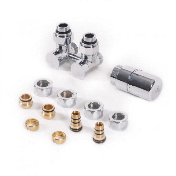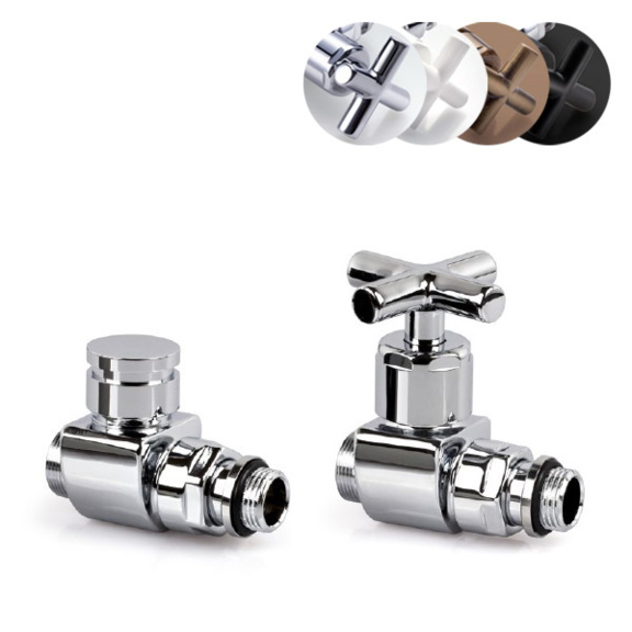 Manuelles Design-Eckventilset – Paar 0623+0673 (ein Zuleitungsventil, ein Ableitungsventil und 2x Gewinde).