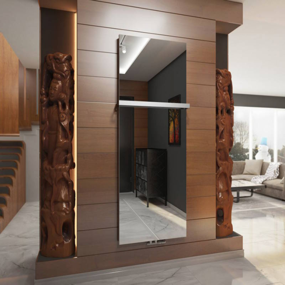 TERMA Intra M ist ein exklusiver Heizkörper der mit einem zentral angebrachten Spiegel ausgestattet wird. Intra M ist ein prächtiges Designstück, das die Einrichtung im Vorraum, Wohnzimmer, Schlafzimmer oder Badezimmer dekoriert. Der Heizkörper beheizt jeden Raum, wo Sie auch gern in den Spiegel schauen.